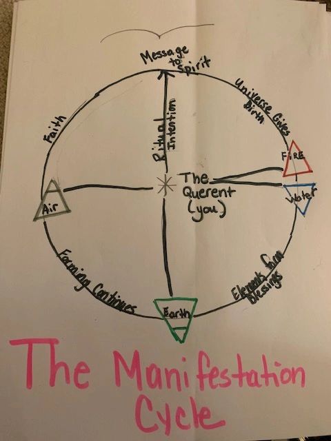 Your faith and belief in the work is carried by the Element of Air back to Spirit completing the circle. This is a never ending loop. Your faith is critical. This is why it’s said that you have to believe in your work for it to work. You are the weakest link here. If you break this energetic chain, the work stops. Manifesting isn’t a one off thing, To be successful, you must put yourself in this loop and remain a part of it. If you visual this as an energetic sphere surrounding you in all directions, you can understand how this is energetic and unending.