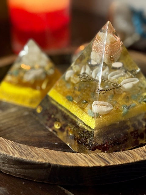 Each pyramid is intentionally layered, symbol-rich, and Reiki-infused by a Reiki Master, creating a calm, steady energetic field that supports long-term financial well-being, clarity, and confidence.