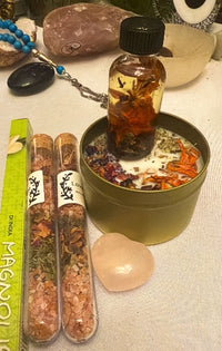 🛁 Spiritual Love Baths (2) – Luxurious and enchanting baths made with pink Himalayan salt, rose petals, and love-drawing herbs. These baths cleanse your aura and open your heart to give and receive love freely. Ideal before rituals or date nights.