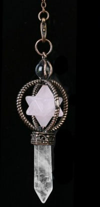 This pendulum includes a quartz crystal which is wonderful for triangulating energy.
