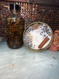 Each 8 oz candle is hand-poured and blessed on my altar with oils and herbs aligned with spiritual awakening and alignment. The companion 1 oz oil can be used to dress candles, anoint your altar, or add to ritual baths—inviting clarity, peace, and deep connection.