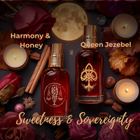 This October, I’m offering a powerful pairing of two conjure oils that bring together the sweetness of harmony and the commanding allure of Jezebel. When used together, they balance charm with sovereignty making you magnetic, irresistible, and aligned with prosperity.